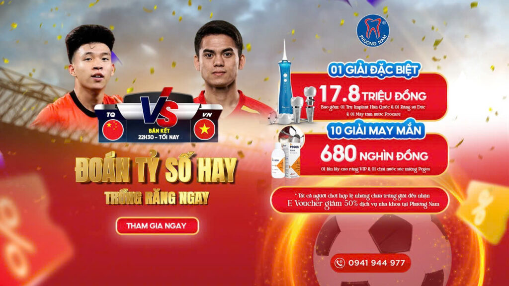 Sau chiến thắng nghẹt thở ở tứ kết, U23 Việt Nam đang viết tiếp hành trình kỳ tích tại đấu trường châu lục. Và giờ đây, bạn hoàn toàn có thể tiếp thêm sức mạnh cho đội tuyển bằng một cách thật đơn giản nhưng đầy ý nghĩa: dự đoán tỷ số trận bán kết và nhận về những phần quà giá trị từ Nha khoa Phương Nam.