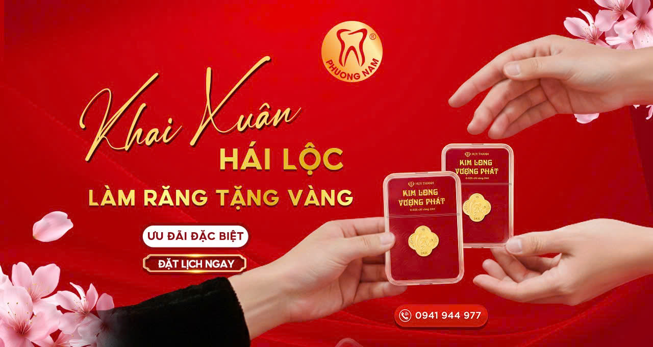 Đầu năm chăm sóc nụ cười – rước lộc vàng về nhà. Nhân dịp Vía Thần Tài 2026, Nha khoa Phương Nam triển khai chương trình “Khai xuân hái lộc – Làm răng tặng đồng vàng” áp dụng tại cơ sở 325 Nguyễn Trãi và 36 Hồ Tùng Mậu. Chỉ với hóa đơn từ 10.000.000đ, khách hàng sẽ nhận ngay 01 đồng vàng hoa mai tài lộc – món quà mang ý nghĩa hanh thông, sung túc và khởi đầu thuận lợi cho cả năm.